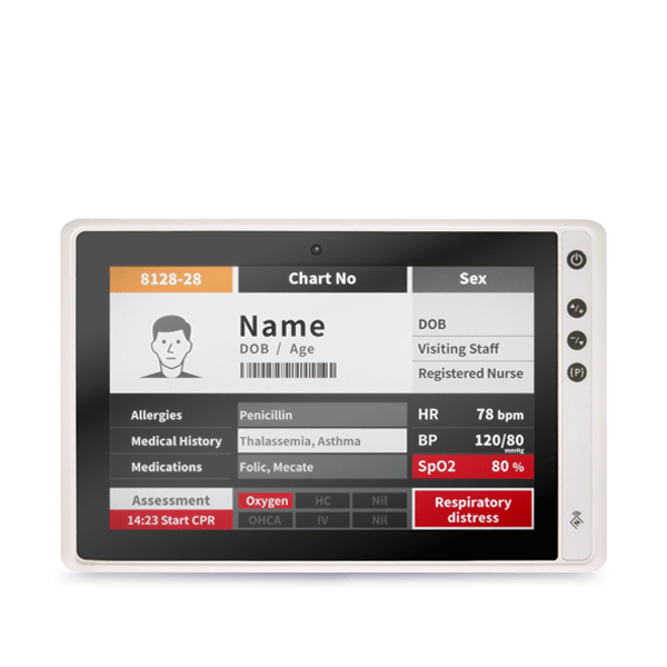 通过内置 NFC 与选配条码扫描器,医护人员可在院内或救护车上快速扫描身份证件、医保卡或腕带,精准建立病人资料并同步至 HIS/EMR 系统,有效提升急诊与住院流程效率。 |